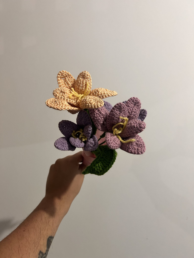 🧶 Chaque pétale, chaque feuille et chaque tige ont été soigneusement travaillés pour créer un bouquet réaliste, coloré et durable.
