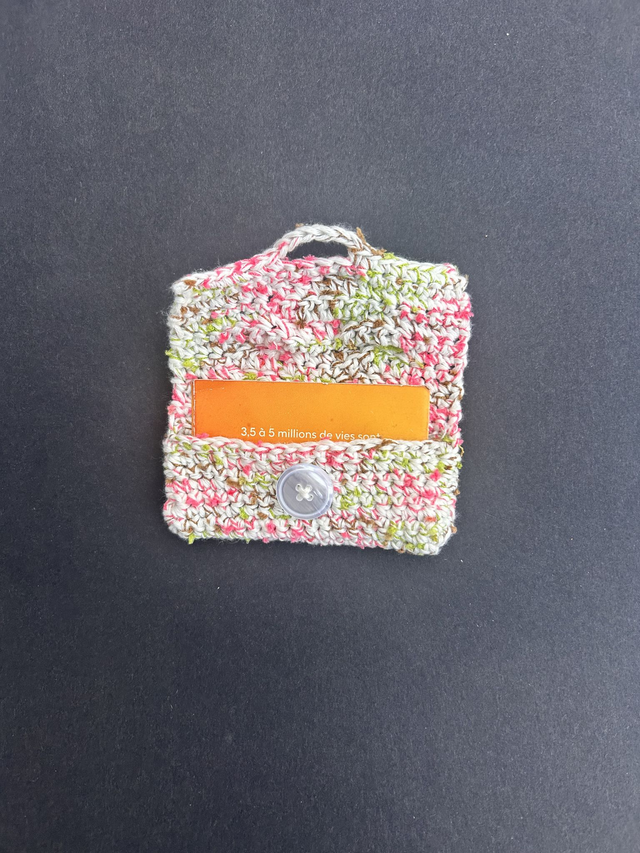 Porte-carte crocheté en coton mélangé avec bouton – Accessoire artisanal unique
