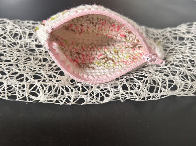 Ce joli petit porte-monnaie au crochet est entièrement réalisé à la main, dans des tons doux et fleuris 🌸.